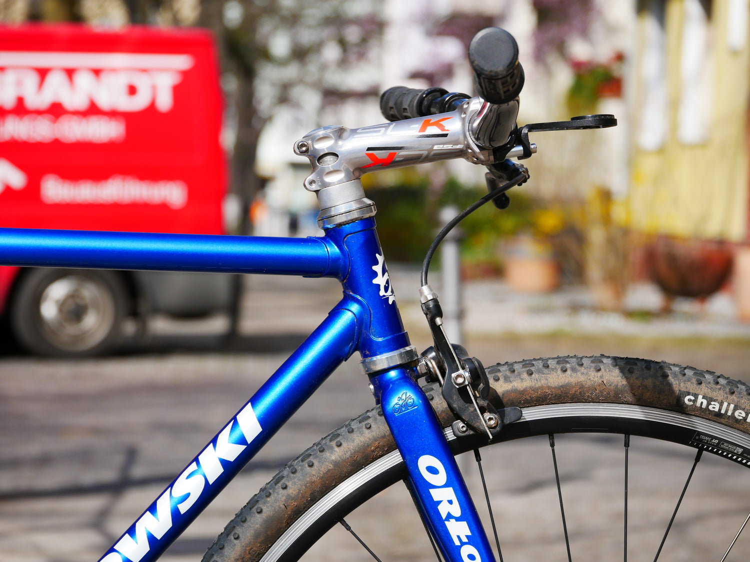 I sadly cannot find a picture of the very first wheels, but the rear was basically radial on both sides with a random spoke going the opposite direction here and there, because I didn’t know you had to calculate spoke length at the time, used whatever spokes I had and just tried to make it work. Surprisingly, I did ride around on them for a bit until I learned more about wheelbuilding and relaced the wheels. I wouldn’t say any specific aspects of this frame were transferred to the 4100 except that they are both fixed gear frames. It was and still is however, the foundation on which my passion for fixed gear is built and I still own this frame today. Over time many frames have come into and left my “collection” if you can call it that. I would like to mention a few notable frames and features that have contributed and found their way into the 4100 in one way or another. First off my Surly Steamroller, which was my first contact to wide tires. Originally brown, I rattle canned it a green / yellow color which is still has today. I did Berlin-Mannheim on it on 38c and realized how wonderful wide tires are. Next on the list is my blue Orlowski. The first ILTB Tracklocross races were planned and ridden on this frame. Through a stroke of luck, it fit wider tires than I had originally anticipated. This is the frame that made me seriously appreciate steel frames, their ride quality and the craftsmanship behind them. A final frame that I cannot leave out here is the a-frame track prototype that I own. Next to a-frame being a huge inspiration himself, the first prototype that he graciously sold me was my first introduction to high bottom brackets. For me personally, a match made in heaven. Ever since I’ve discovered and ridden the high bottom brackets, I have not been able to let go. The Vapour Cycles frame that I rode at the last last wo/man standing also incorporated a high bottom bracket. The feeling that it gives you is fascinating and an essential pillar of inspiration for my own 4100 frame.